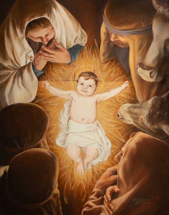 "I purchased Brie’s print of St. Thomas touching the wounds of Christ when I was newly pregnant. The image remained on my nightstand throughout my pregnancy, giving me consolation and faith in times of difficulty and doubt. We named our son Thomas because of the profound impact of her painting and witness to our faith."